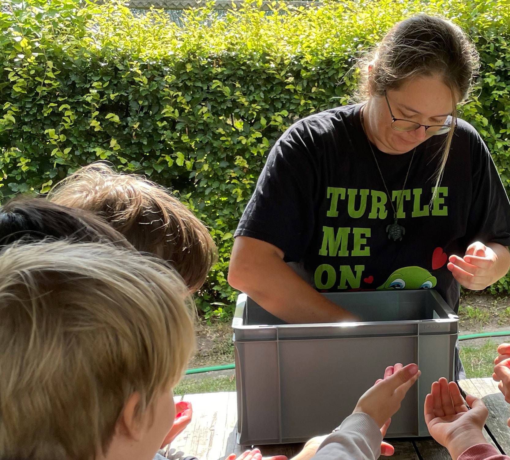 Die 2022 aufgestellten vier Hälterungsboxen, in denen 2-jährige Schildkröten von Mai bis August durch Anpassung an natürliche Klimabedingungen auf die Auswilderung vorbereitet werden, waren wieder voll belegt.
